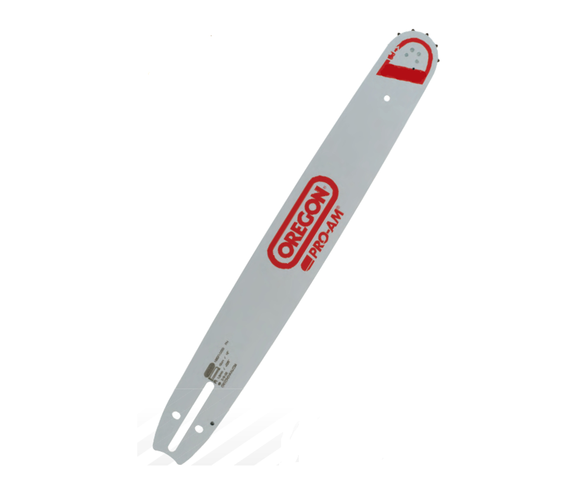 Lâmina Oregon com rolete substituível, ponta com raio de pequena dimensão para ajudar a reduzir o efeito de ricochete, concebida para o uso semi-profissional e para motosserras pequenas ou médias.